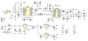 Obwód złożony z dławika L3 i kondensatorów CE1, C7 filtruje zasilanie części cyfrowej przetwornika. Kondensator C6 współpracuje z wewnętrznym stabilizatorem LDO, a dławik L4 i pojemność C10 filtrują zasilanie części analogowej. Kondensatory C8 i C9 są elementami wbudowanej pompy ładunkowej wytwarzającej ujemne napięcie zasilania bloków analogowych.