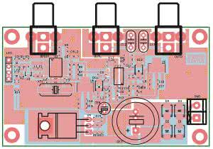 Urządzenie zmontowano na niewielkiej, dwustronnej płytce drukowanej. Sposób montażu jest typowy i nie wymaga opisywania. Rozmieszczenie elementów pokazano na rysunku 3. Starannie zmontowany przetwornik ze sprawdzonych elementów nie wymaga uruchomienia. Po sprawdzeniu poprawności montażu można doprowadzić sygnał ze źródła S/PDIF, włączyć zasilanie i cieszyć się muzyką.