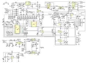 Do sterowania pracą przetwornicy przepustowej wykorzystano sterownik typu TL494. Pracuje on z częstotliwością kluczowania 45 kHz, którą ustanawiają elementy R36 i C25. Sterownik wyposażono w układ miękkiego startu (zwłoka około 5 s). Ten czas ustalają elementy C21 i R35. Oba komparatory zawarte w strukturze sterownika U8 są wyposażone w sprzężenia zwrotne.