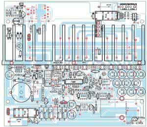 Termistor R45 jest przyklejony do radiatora za pomocą kleju termoprzewodzącego. Podczas montażu radiatora do płytki można powierzchnie styku radiatora z płytką posmarować klejem. Usztywni to dodatkowo płytkę, ponieważ spoczywa na niej spory ciężar radiatora oraz dławików.