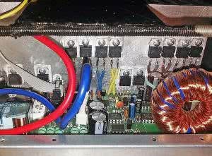 Płytkę panelu czołowego przymocowano za pomocą śrub z tworzywa sztucznego. Z tyłu obudowy są zamontowane dwa wentylatory dbające o zabezpieczenie półprzewodników mocy przed przegrzaniem. W praktyce, gdy prąd ładowania nie przekracza 6 A wentylatory nie są potrzebne. Jednak ładowarka podczas pracy na słońcu może ulec przegrzaniu z braku odpowiedniego chłodzenia. Kable służące do połączenia ładowarki z akumulatorem powinny mieć minimalny przekrój rzędu 4 mm².