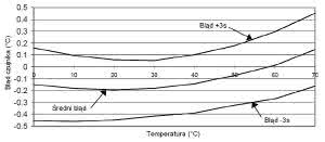Do pomiaru temperatury zastosowano cyfrowe czujniki DS18B20 o dużej rozdzielczości i dokładności pomiaru (na rysunku 2 zamieszczono charakterystykę przedstawiającą dokładność czujników). Dołączono je do niezależnych wyprowadzeń mikrokontrolera, ponieważ zwiększa to szybkość wykonywania pomiaru i zapewnia bezproblemową wymianę danego czujnika bez potrzeby rozpoznawania i zapamiętywania adresu nowego czujnika.