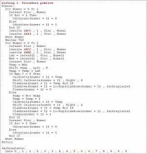 Program sterujący mikrokontrolerem napisano w środowisku Bascom AVR. W pętli głównej jest wywoływana procedura pomiaru (listing 1) oraz jest wysłana ramka zawierająca zmierzone dane do modułu Bluetooth. Ramka może mieć następującą postać: "1:0:23:9:1:0:24:0:a".