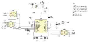 Układ odbiornika S/PDIF uzupełniają elementy filtrujące zasilanie. Każdy z bloków funkcjonalnych układów UW1 jest zasilany poprzez filtr LC. Rezystor RP2 ogranicza przerost amplitudy szybkich sygnałów I²S.