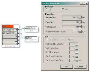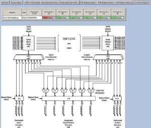 Na rysunku 9 pokazano konfigurację programatora USBi, procesora DSP i pamięci EEPROM. Konfigurację sprzętową portów szeregowych DSP przedstawia rysunek 10. Porty Serial Input2 (I²S), Serial Input7 (SPDIF) są ustawione standardowo jako slave I²S (są odbiornikami, nie generują sygnałów I²S).
