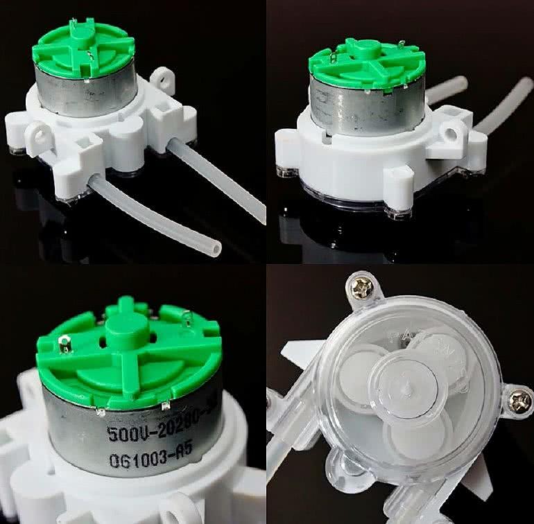 Koncepcja dozownika opiera się na wykorzystaniu małej pompy perystaltycznej przeznaczonej do użytku głównie w systemach akwariów morskich. Pompa taka składa się z silniczka komutatorowego o mocy około 2 watów na napięcie 6 V, przekładni planetarnej i systemu trzech rolek ugniatających wężyk silikonowy.