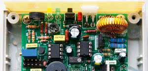 Schemat montażowy dozownika zamieszczono na rysunku 5. Sterownik modelowy zmontowano na niewielkiej płytce dwustronnej, zawierającej wszystkie elementy poza akumulatorami. Elementy sygnalizacyjne i sterujące oraz główne gniazdo J2 do podłączenia pompy i czujnika poziomu zostały zgromadzone na jednym boku, co pozwala na wyprowadzenie ich na płytę czołową, co ilustruje fotografia 4. Kolejność lutowania jest typowa, upakowanie na tyle niewielkie, że nie powinno stanowić problemu.