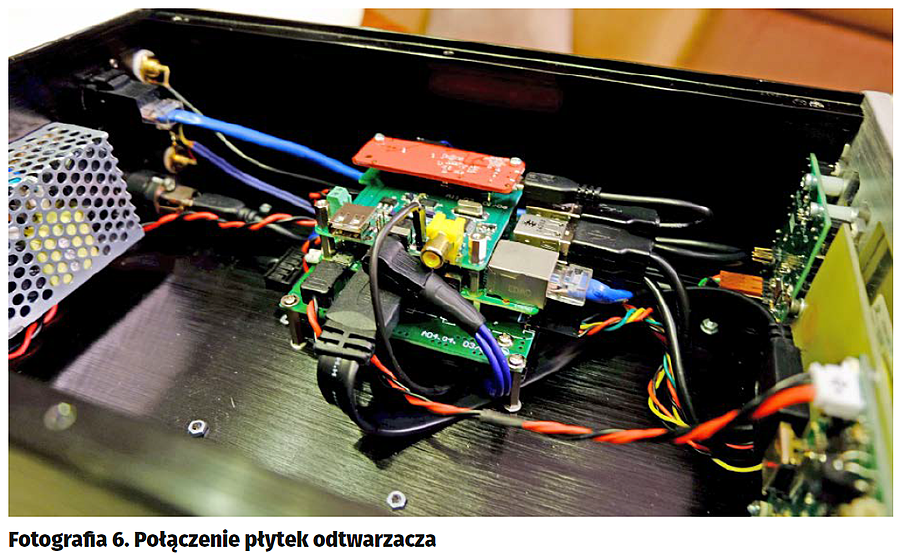 Za część audio odtwarzacza odpowiada opisana w EP 5/2016 (AVT1906) karta Combo dla Raspberry PI integrująca przetwornik C/A (PCM5102) oraz nadajnik