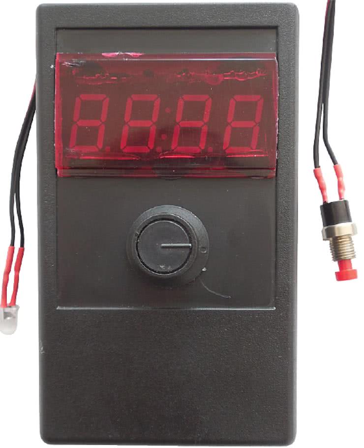Do wskazywania użytkownikowi aktualnych nastaw służy 4-cyfrowy wyświetlacz 7-segmentowy. Świeci w kolorze czerwonym, ponieważ ta długość fali jest stosunkowo słabo rejestrowana przez przetworniki obrazu, które przecież odwzorowują czułość ludzkiego oka. Urządzenie będzie prawdopodobnie przytwierdzone do statywu i jego wyświetlacz zostanie skierowany w stronę przeciwną do obiektywu aparatu, więc emitowane przezeń światło i tak nie powinno zostać ujęte przez matrycę aparatu. Niemniej jednak warto i tę możliwość zminimalizować. Inną alternatywą jest użycie wyświetlacza świecącego w barwie niebieskiej. Jest to jednak alternatywa znacznie droższa oraz wymagająca wyższego napięcia zasilania.