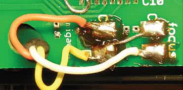 Na fotografii 8 jest widoczne podłączenie przewodów pilota aparatu Nikon D5000. W kablu były tylko trzy żyły, więc dwa pola lutownicze musiały zostać zwarte.