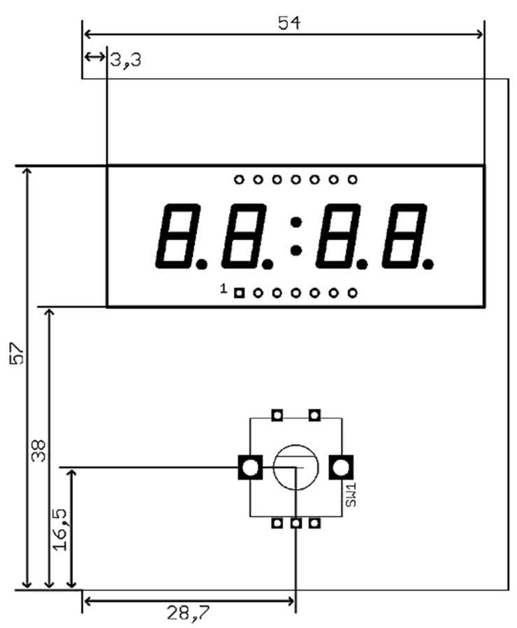 Aby ograniczyć liczbę użytych wyprowadzeń mikrokontrolera, do sterowania wyświetlaczem został zaprzęgnięty rejestr przesuwny z wyjściem równoległym. Dzięki temu załączenie każdej cyfry polega na „wsunięciu” odpowiedniego ciągu bitów w rejestr oraz załączeniu odpowiedniej anody. Układ typu 74HC595 bardzo dobrze sobie radzi z tak niskim (rzędu 3 V) napięciem zasilania. Prąd segmentów ograniczono do ok. 1,5 mA, przy którym to wyświetlacz jest czytelny, a zyskano obniżenie poboru prądu z baterii. Duża jasność świecenia jest niewskazana z wyżej wspomnianego powodu. Urządzenie i tak będzie eksploatowane w ciemności, za to dodanie czerwonego filtru znacznie podniesie kontrast cyfr.