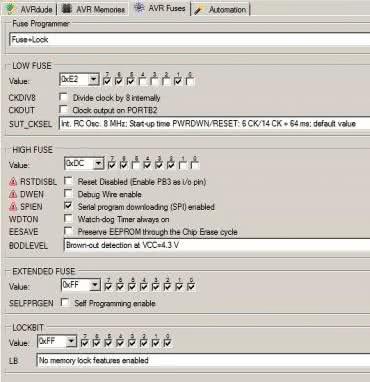 Przed włożeniem mikrokontrolera w podstawkę należy go zaprogramować. Pierwszym krokiem jest zmiana fabrycznych bitów zabezpieczających: