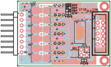 Na złącze CTRL doprowadzono sygnały sterujące i monitorujące pracę kondensatorów i balansera. Do wyprowadzenia 1 doprowadzono rzez rezystor 10 kΩ/1% napięcie z baterii, przeznaczone do układu pomiaru napięcia. Wartość rezystora należy uwzględnić w obliczeniach dzielnika pomiarowego. Sygnał EN=1 aktywuje pracę balansera i powinien być używany do wyłączenia układu przy zaniku zasilania sieciowego lub wyłączeniu ładowarki. Balanser normalnie jest aktywny, zapewnia to rezystor RP podciągający sygnał EN do wewnętrznego zasilania. Sygnał „OK” potwierdza sprawność układu balansowania (Selftest), sygnały OV1 i OV2 sygnalizują stan awaryjny tj. przekroczenie napięcia na dowolnym kondensatorze w porównaniu z wartością ustaloną zworami CFG, OV1>0,15 V, OV2>0,3 V. Sygnały EN, V0, V1 podwieszone są do wewnętrznego napięcia zasilania (3,6…5 V) przez rezystor RP1. Wejście EN powinno być sterowane z wyjścia OC/OD.
