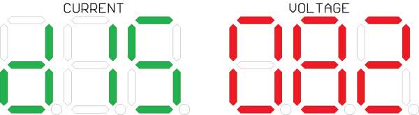 Po przyłączeniu potencjometru do zacisków złącza P1 oraz włączeniu zasilania, układ znajduje się w trybie regulacji napięcia końcowego. Wyświetlacze wyglądają jak na rysunku 7. Wyświetlacz amperomierza jest wygaszony, a na woltomierzu jest wskazywane maksymalne napięcie, do którego będzie formowany kondensator.