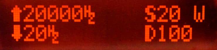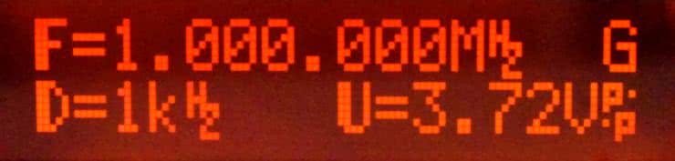 Opisywany przyrząd może pracować w dwóch trybach. Pierwszy z nich to zwykły tryb generatora (fotografia 3), w którym częstotliwość wyjściową synchronicznych sygnałów: sinusoidalnego i prostokątnego, możemy ustawiać w zakresie od 1 Hz do 40 MHz z minimalnym krokiem 1 Hz (możliwe kroki regulacji to: 1 Hz, 10 Hz, 100 Hz, 1 kHz, 10 kHz, 100 kHz i 1 MHz). Istnieje też możliwość płynnej regulacji poziomu sygnału sinusoidalnego za pomocą potencjometru obrotowego, a jego wartość U (w jednostkach Vp-p) jest prezentowana na ekranie LCD 16×2 razem z nastawionymi: częstotliwością F i krokiem strojenia D. Drugi tryb pracy urządzenia to tryb wobulatora (fotografia 4).