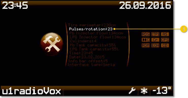 - Pulses/rotation: stała przetwornika drogi.