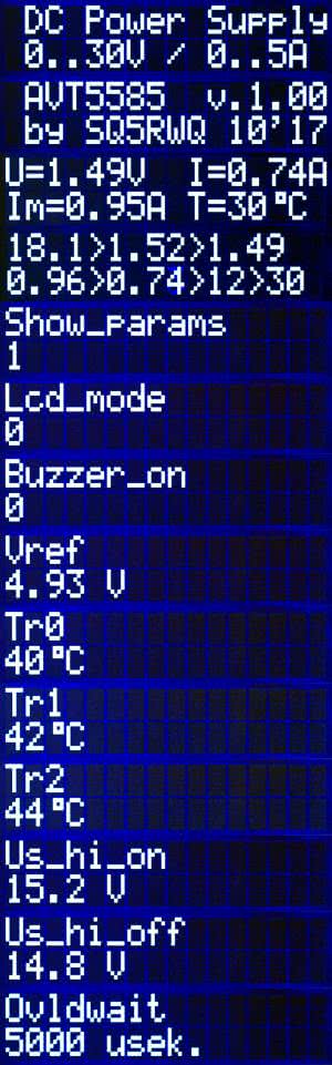 ' Podmenu wyświetlania parametrów konfiguracyjnych (zapisanych w EEPROM) przed rozpoczęciem właściwej pracy zasilacza