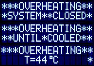 Na fotografii 23 pokazano komunikat wyświetlany po przekroczeniu przez radiator progu temperatury Tr2 i wejściu urządzenia w stan tzw. przegrzania. Cyklicznie jest powtarzana treść trzech kolejnych komunikatów, przy czym ostatni prezentuje wartość temperatury bieżącej radiatora Tr.