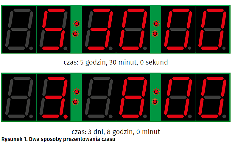 Gdy jest wybrana jedna z wartości początkowych P1...P5, to przyciskając przycisk „ST”, można natychmiast rozpocząć odliczanie od tej wartości, co powoduje automatyczne przywrócenie ekranu odliczania. Wtedy ponowne przyciśnięcie przycisku „ST” umożliwia zatrzymywanie i wznawianie odliczania. Natomiast jeśli jest wybrana jedna z wartości początkowych i zostanie przyciśnięty przycisk „EN”, to jest uruchamiany tryb edytowania wartości. W tym trybie wartość sekund zacznie migać na przemian z symbolem podkreślenia. Każde kolejne przyciśnięcie przycisku „EN” spowoduje miganie kolejnych wartości: minut, godzin i na koniec dni (rysunek 3).