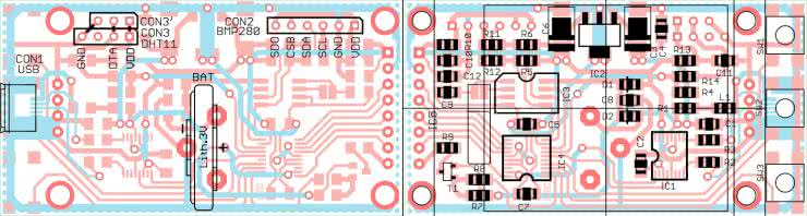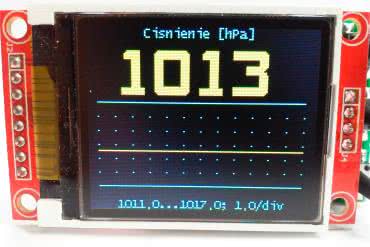 Pomiar temperatury i ciśnienia dokonywany jest przy pomocy czujnika BMP280. Jest to czujnik produkcji firmy Bosch Sensortec, zamknięty w nietypowej, miniaturowej obudowie o wymiarach ok. 2 mm×2,5 mm×1 mm. Komunikacja z czujnikiem odbywa się poprzez interfejs I²C. Czujnik pozwala uzyskać pomiary o stosunkowo dużej rozdzielczości, ale skonfigurowanie czujnika oraz proces otrzymywania wyniku nie należą do najprostszych. Dokumentacja czujnika jest bardzo pomocna – oprócz opisu znaczenia poszczególnych parametrów, podaje przykłady ustawień, od konfiguracji Ultra low power do Ultra low precision oraz przykłady konfiguracji dla różnych zastosowań np. w urządzeniu przenośnym, monitorze pogodowym czy module wykrywającym zmianę piętra w systemie sterowania windą. W opisywanym urządzeniu zastosowano konfigurację uśrednioną, a kod odpowiedzialny za inicjalizację czujnika przedstawia listing 1.