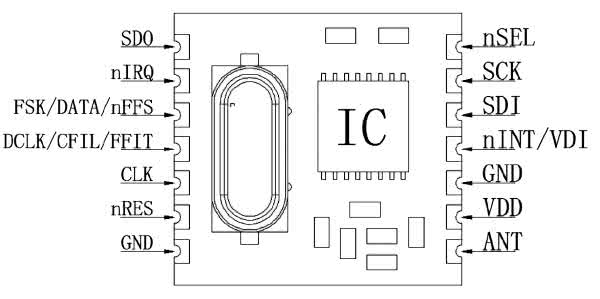 Prace konstrukcyjne rozpocząłem od poszukiwania takich modułów radiowych i dość szybko natknąłem się na bardzo popularne układy RFM-12B pracujące w paśmie 433, 868 lub 915 MHz (w zależności od wersji) będące przedstawicielem całej rodziny modułów radiowych produkowanych przez firmę HopeRF. Moduły, o których mowa stanowią kompletne rozwiązanie toru radiowego nadawczo-odbiorczego dostarczając wygodny interfejs komunikacyjny SPI pozwalający na przeprowadzenie pełnej konfiguracji elementu w ramach dostępnej szerokiej palety ustawień jak i sterowanie komunikacją radiową.