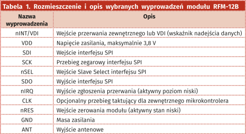 Na rysunku 1 pokazano wygląd płytki drukowanej modułu w wersji SMD, natomiast w tabeli 1 rozmieszczenie tych wyprowadzeń, które są używane w opisywanej aplikacji.