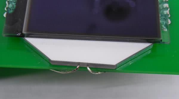 Poprawne wyświetlanie zawartości ekranu jest możliwe po załączeniu zewnętrznego podświetlenia. Wykonano je wklejając białą diodę LED w poliwęglanową płytkę, której zadaniem jest równomierne rozpraszanie światła. Ponieważ napięcie przewodzenia tej diody wynosi około 3 V, do ograniczenia natężenia płynącego przez nią prądu przy zasilaniu z 3,3 V wystarczy opornik R26 o rezystancji 100 V.
