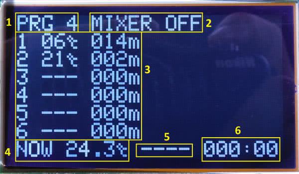 Po wybraniu jednego z programów – dla przykładu, niech będzie to program czwarty – zostaną załadowane zapamiętane nastawy. Na ekranie znajdzie się również kilka innych rzeczy, które zostały zaznaczone na fotografii 13. Są to, kolejno:
