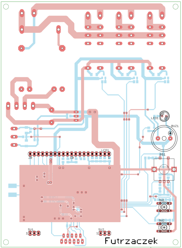 Na koniec, uwaga czysto techniczna – ścieżki na płytce mają określoną wytrzymałość prądową. Zostały one odsłonięte spod soldermaski, aby ułatwić ich pogrubienie przy użyciu np. nalutowanego na nie drutu lub tylko pocynowanie. W przypadku odbiorników pobierających naprawdę wysoką moc, polecam użycie zewnętrznych styczników, których cewki będą załączane przez przekaźniki znajdujące się na płytce sterownika.