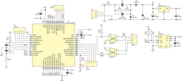 - U4: STM32F103C8T6 (LQFP-48)