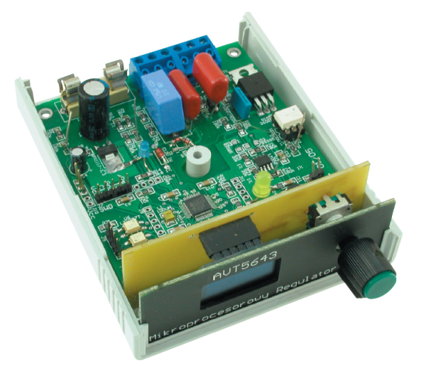 Ostrożnie! Regulator mocy jest galwanicznie połączony z siecią 230 V AC. Podczas uruchamiana i użytkowania należy zachować szczególną ostrożność. Dodatkowo, przy uruchamiania zalecane jest użycie transformatora separującego.