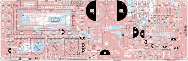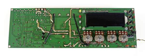 Jako wyprowadzenie z PCB do kontaktu z tymi potencjometrami najlepiej jest wykorzystać odcinki męskich, prostych, 5-ciopinowych łączy „goldpin”, z których należy usunąć wąskimi szczypcami drugie i czwarte piny (symetrycznie). Elementy mocowane w obrębie bloku kondensatorów filtrujących C8 i C9 należy zamontować starannie na krótkich wyprowadzeniach, a same elementy C8 i C9 zamontować tak, by ich odległości od zastosowanych: transformatora i radiatora nie okazały się zbyt małe. Wyświetlacz LCD (U7) można zalutować na stałe na pojedynczym męskim złączu „goldpin”, jednak uprzednio należy upewnić się, że jest on sprawny, a wszystkie lutowania w obrębie jego powierzchni są prawidłowe.