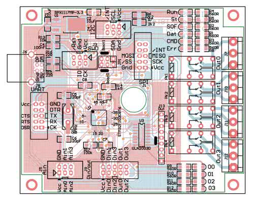Poza 4 wyjściami przekaźnikowymi moduł ma 4 wejścia cyfrowe. Wejścia i wyjścia cyfrowe doprowadzone są do złącza. Opcjonalnie można dodać w programie obsługę 4 wejść analogowych, interfejsów SPI, I2C oraz USART. Otwarte oprogramowanie umożliwi łatwe dostosowanie możliwości