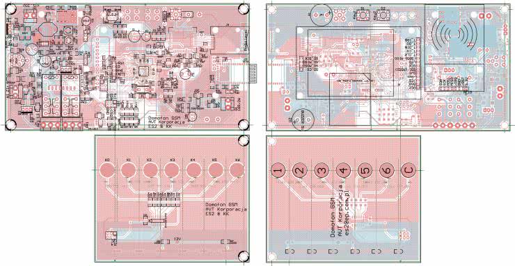 Otwieranie rygla jest załączane przekaźnikami. Domofon ma dwa przekaźniki. J6 służy do przyłączenia płytki drukowanej z „przyciskami” dotykowymi (pojemnościowymi). Na płytce klawiatury pojemnościowej zamontowano również sterownik oraz diody podświetlające.