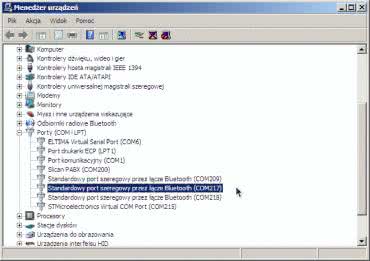 W komputerze BT zajmuje kilka portów COM (rysunek 7). Należy wybrać ten, który ma ustawiony kierunek „Wychodzący”. Aktualnie działa interpretowanie komend wysłanych przez BT, ale ich rezultat jest wyświetlany przez USB. W kolejnych wersjach obsługa komunikacji przez BT zostanie zrealizowana w całości.