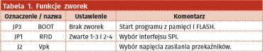 W tabeli 1 umieszczono wykaz zworek wraz z opisem ich funkcji, natomiast w tabeli 2 wykaz diod LED oraz opis sposobu funkcjonowania statusu domofonu.