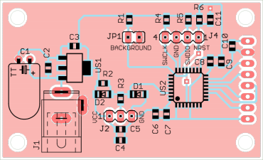 W celu zaprogramowania pamięci Flash mikrokontrolera przewidziano złącze J4, na które wyprowadzono podstawowe sygnały interfejsu SWD oraz masę. Ponieważ nie służą one do innych celów, zostały podciągnięte rezystorami do dodatniej linii zasilania, aby ustalić ich potencjał.