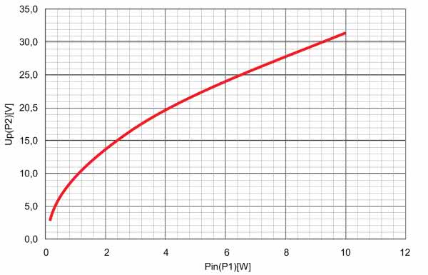 Up(P2)=sqrt[2·Rload·Pin(P1)]–0,42 [V]