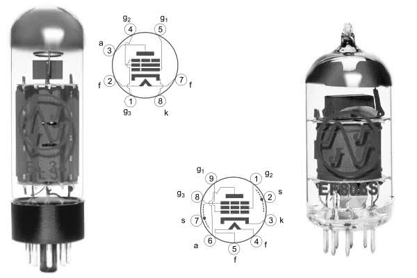 - V1L, V1R: EF86 + podstawka