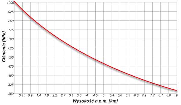 Wartość ciśnienia atmosferycznego dla standardowych warunków pogodowych dla wysokości h (n.p.m.) możemy wyznaczyć z uproszczonej zależności opisanej wzorem: