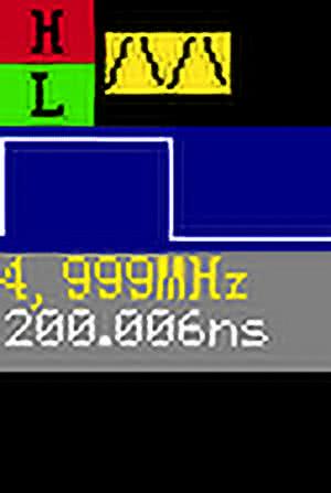 - pomiar czasu trwania impulsu/okresu 27 ns…2 s, 2 zakresy (μs, ms) rozdzielczość 27 ns/1 μs,