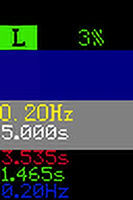 Na poprzednim rysunku pomiar sygnalizuje wystąpienie przebiegu o częstotliwości 0,2 Hz (okres 5 sekund). Rozdzielczość pomiaru wynosi 0,01 Hz. Standardowa metoda pomiaru częstotliwości, przez zliczanie liczby impulsów w ciągu zadanego czasu, dla osiągnięcia rozdzielczości 0,01 Hz, wymagałaby czasu bramkowania 100 sekund (ponad 1,5 minuty). Wbudowane w sondę mechanizmy, pozwalają mierzyć niskie częstotliwości w czasie równym okresowi sygnału. Tak naprawdę, mierzony jest czas trwania okresu po czym przeliczny na częstotliwość. Dzięki temu pomiar przebiegów o częstotliwościach poniżej 1 kHz wykonuje się bardzo szybko z wysoką rozdzielczością.