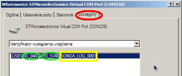 Jednak najszybszym sposobem identyfikacji, zwłaszcza gdy portów jest dużo, będzie otworzenie okna właściwości i tam w szczegółach sterownika (rysunek 5) odczytamy VID i PID, który jest taki sam dla wszystkich typowych urządzeń klasy CDC STMicroelektronics oraz numer seryjny, który dla sondy, przyjmuje ciąg znaków SONDA_LOG_0001.