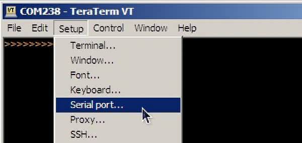 W przykładzie znaleziono jedno ttyACM0. Komenda udevadm info -a /dev/ttyACM0 wyświetli szczegóły urządzenia, znajdziemy tam VID i PID oraz nazwę tak jak w przypadku Windows. Gdy już znamy numer portu COM, wystarczy go wskazać w programie terminala (rysunki 7 i 8), parametry transmisji nie są istotne. W systemie Linux można posłużyć się programem PuTTY. Poprawność pracy terminala sygnalizuje pojawiający się co dwie sekundy znak zachęty (>).