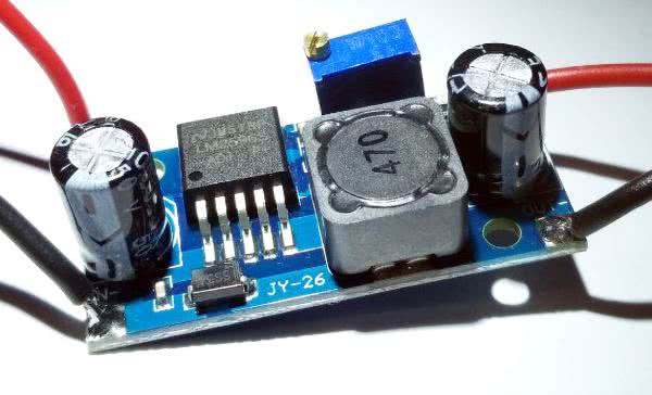 Testy generatora skokowych obciążeń przeprowadzono na gotowym module przetwornicy z układem LM2596 (fotografia 1).