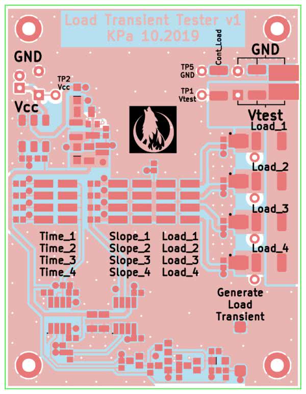 Rezystory R4, R6, R8 oraz R10, przełączane przy pomocy zworki J5, regulują długość trwania impulsu obciążenia. Przy pomocy zworki J6 możemy zwiększać bądź zmniejszać stromość zboczy impulsu. Zworka J7 pozwala wybrać, które z obciążeń zostanie załączone. Rezystory R2, R5, R15 oraz R20 zostały dobrane tak, aby można było wygenerować obciążenie od kilkuset miliamperów do kilku amperów. Rezystor R26 służy do wstępnego, ciągłego obciążenia testowanego układu (tak aby skok obciążenia nie następował od wartości zerowej).