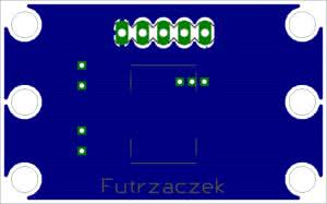 W odległości 3 mm od krawędzi płytki znalazły się otwory montażowe. Mniejsza, na której jest czujnik AMG8833 i okalające go elementy, ma wymiary 40×25 mm, a jej schemat montażowy widać na rysunkach 7 i 8.