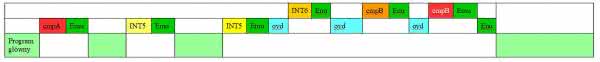 W przerwaniach wykonuje się kod emulacji oznaczony ciemnozielonym kolorem. Kolor czerwony to przerwanie od komparatora A (wykrycie reset), pomarańczowy komparator B (reset overdrive). Oprogramowanie przerwania comB stwierdza czy impuls resetu trwał 70 μs czy 440 μs. Jeśli 440 μs postępuje tak jak w przypadku przerwania od komparatora A (czerwone tło z białą czcionką). Podczas procedur emulacji w przerwaniu INT5, po zdekodowaniu rozkazu skip lub match overdrive, uruchamiany jest tryb overdrive (zezwolenie na INT4 i CompareB, blokada INT5). Tryb ten jest oznaczony kolorem seledynowym. Przerwanie INT6 lub COMPB może przerwać pętlę w INT5. Jeśli był to reset overdrive lub operacja na bicie (zapis, odczyt), program powraca do overdrive, jeśli stwierdzono standardowy sygnał reset następuje powrót do programu głównego. Jest to dość skomplikowane ale działa.