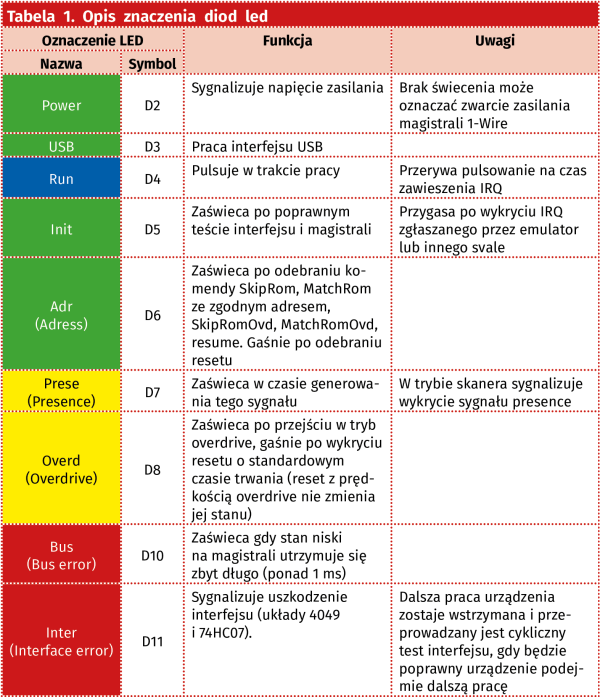 - numerów seryjnych DS1990, DS2400, DS2401, DS2411 wszystkie komendy (ReadRom, SkipRom, MatchRom),