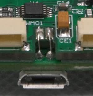 Moduł jest montowany do RPi Zero za pomocą wkrętów M2.5. Pomiędzy Stickiem a RPI Zero koniecznie jest umieszczenie płytki izolacyjnej, wyciętej z pleksi lub innego materiału, o grubości 0,25…0,5 mm, w kształcie RPi Zero. Płytka izolacyjna z odpowiednio wyciętymi otworami i szczelinami w okolicy GPIO zapobiega zwarciom pomiędzy stykającymi się mechanicznie obwodami. Po wlutowaniu należy skrócić wyprowadzenia ustalające złącza USB/PC, aby nie wystawały ponad płytkę i nie uszkodziły izolacji pomiędzy płytkami. W modelu do RPI Zero wlutowane jest także pełne złącze GPIO, ponieważ często korzystam z różnych innych modułów HAT, które mocowane są do dystansów M2.5×10. Po skręceniu płytki z RPi, w miejscach wykorzystanych przez PI GPIO należy kroplą cyny połączyć pola lutownicze obu płytek. Wyprowadzenia złącza wystające ponad płytkę RPi Zero ułatwiają lutowanie, ale należy zwrócić uwagę na ewentualne zwarcia pomiędzy pinami. Połączenie interfejsu USB wymaga użycia krótkich odcinków odizolowanego kynaru i ostrożnego przylutowania ich bezpośrednio do punktów testowych USB na RPI Zero, co pokazuje fotografia 1.